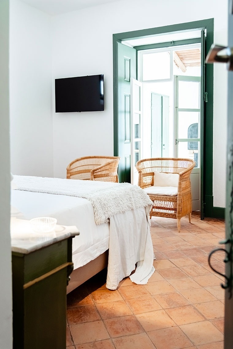 Mantendo a traça original em Tijolo Burro, os Quartos Deluxe oferecem uma decoração